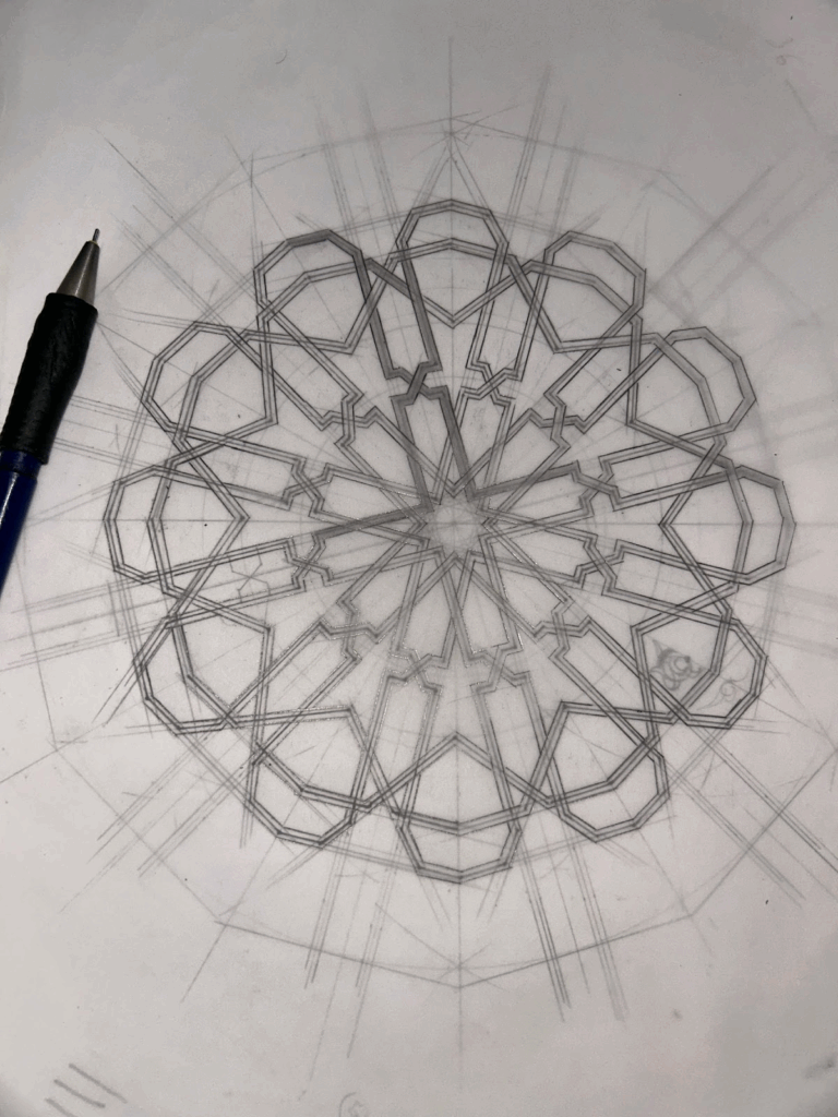 The work in your image clearly follows this tradition: you used a compass, ruler, and radial symmetry — exactly how Moroccan craftsmen begin a pattern.
